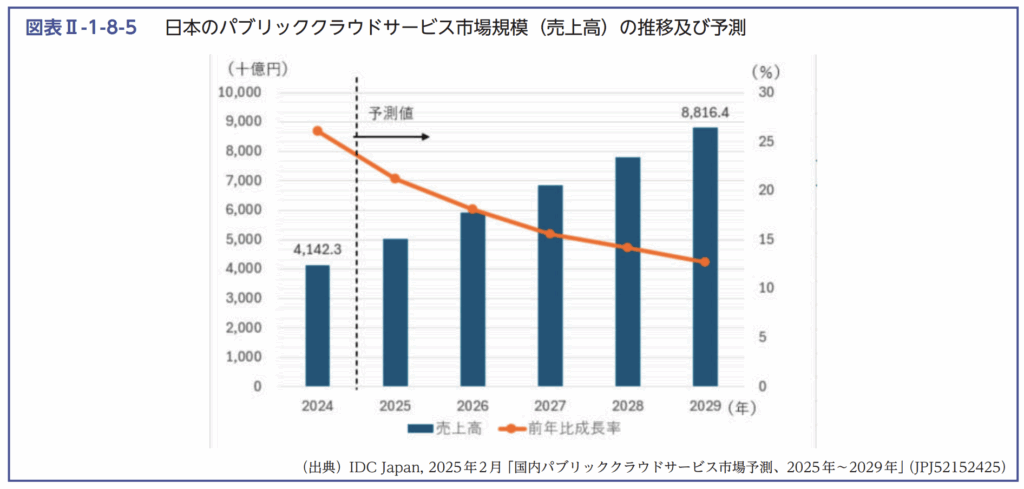 Webサービスの土台となる国内のパブリッククラウドサービス市場は、2024年に4兆1,423億円規模に到達しました。前年比で26.1パーセントもの急成長を遂げており、システムの画面側を担う専門家の需要も比例して高まっています。